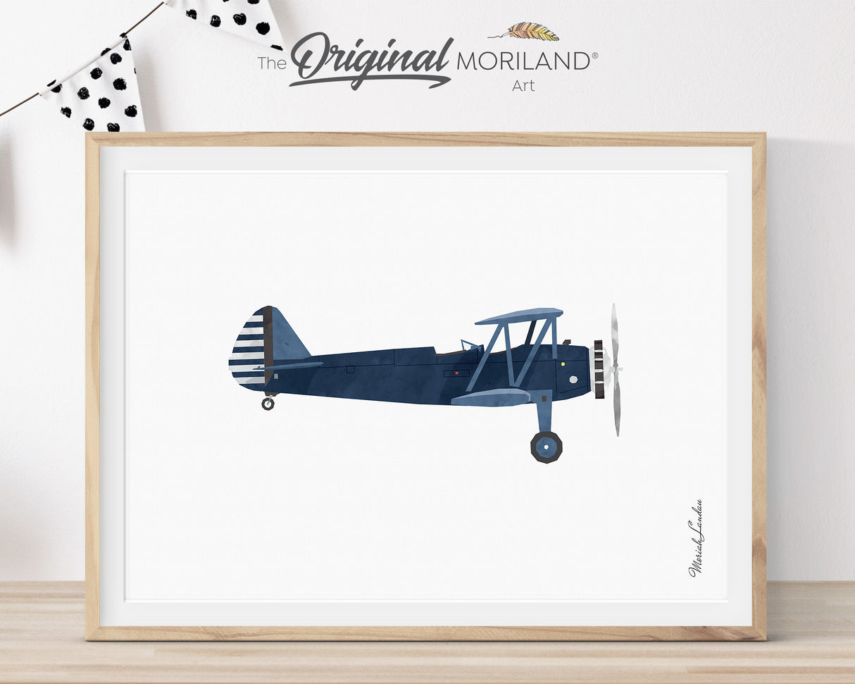 Navy Blue Vintage Biplane Print - Printable Art - 8x10, 16x20" and 40x50cm is backordered and will ship as soon as it is back in stock.
