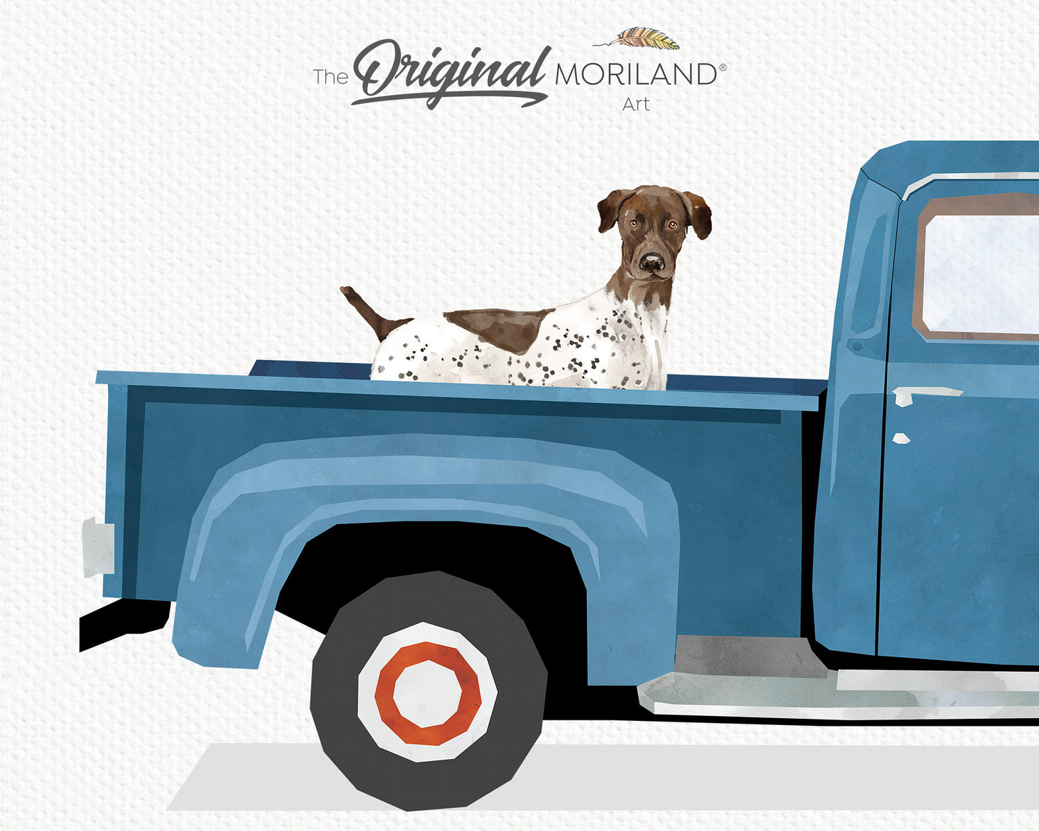 Pale Blue Old Truck with German Shorthaired Pointer Dog Print - Printable Art