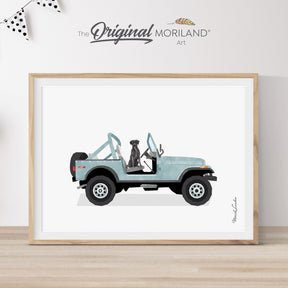 Pale Blue Open SUV with Black Labrador Dog Print - Printable Art