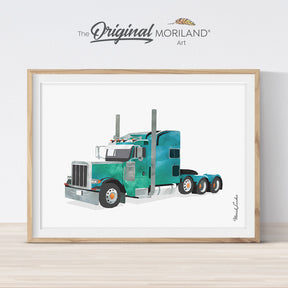 Green Semi Truck Print - Printable Art - 8x10, 16x20" and 40x50cm is backordered and will ship as soon as it is back in stock.