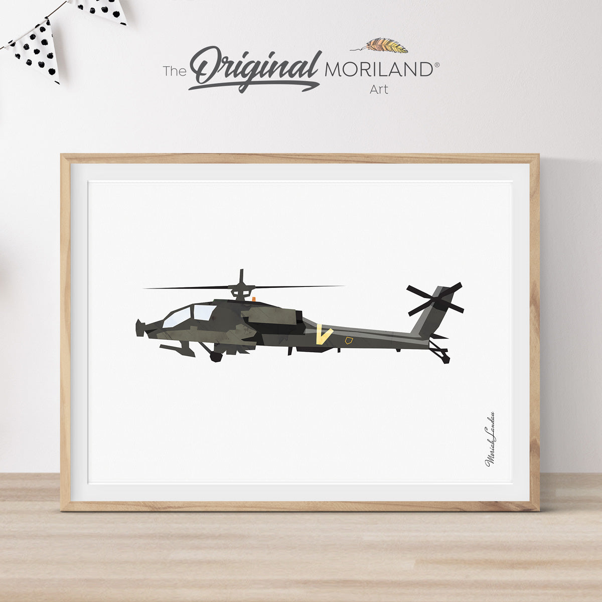 Black Army Attack Helicopter Print - Printable Art - 8x10, 16x20" and 40x50cm is backordered and will ship as soon as it is back in stock.