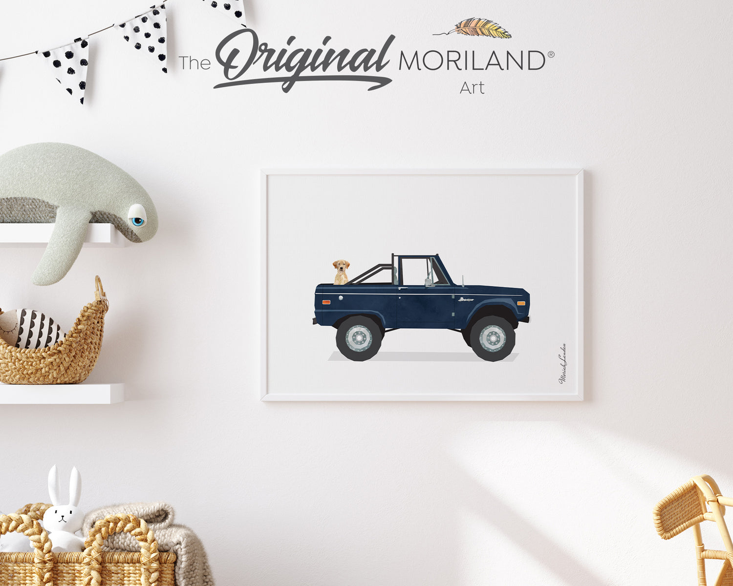 Navy Blue Classic Truck With Labrador Retriever Dog Print - Printable Art