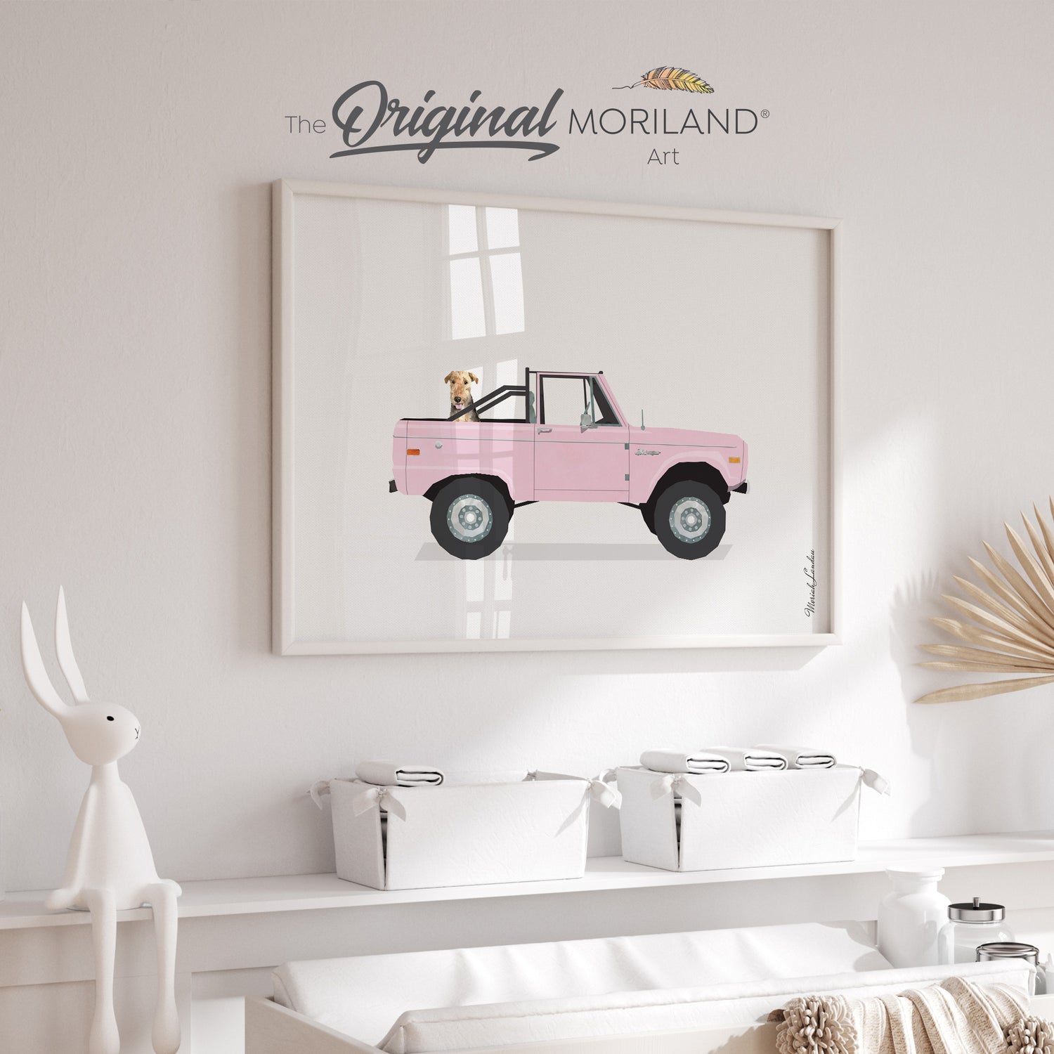Pink Classic Pickup Truck with Airedale Terrier Dog Print - Printable Art