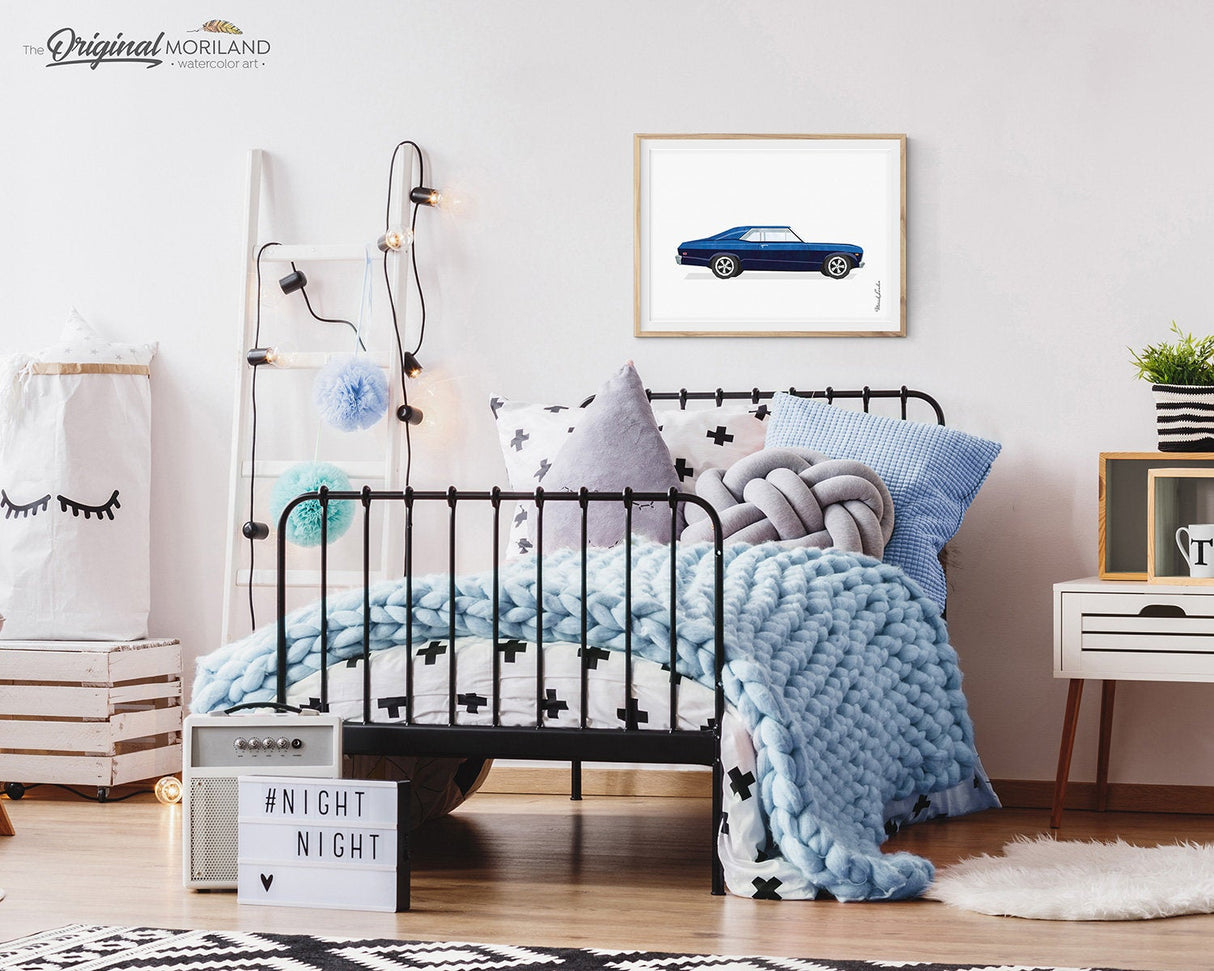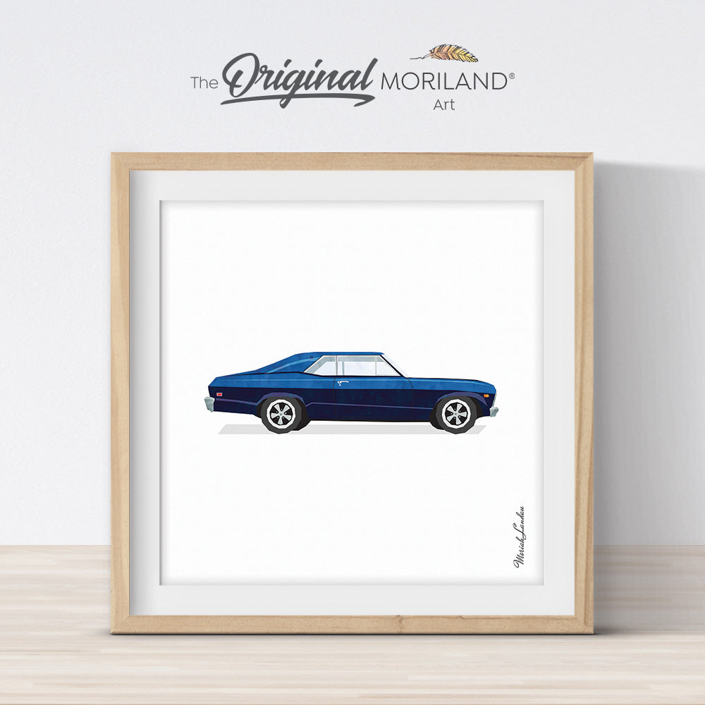 Blue Classic Muscle Car Print - Printable Art - 8x10, 16x20" and 40x50cm is backordered and will ship as soon as it is back in stock.
