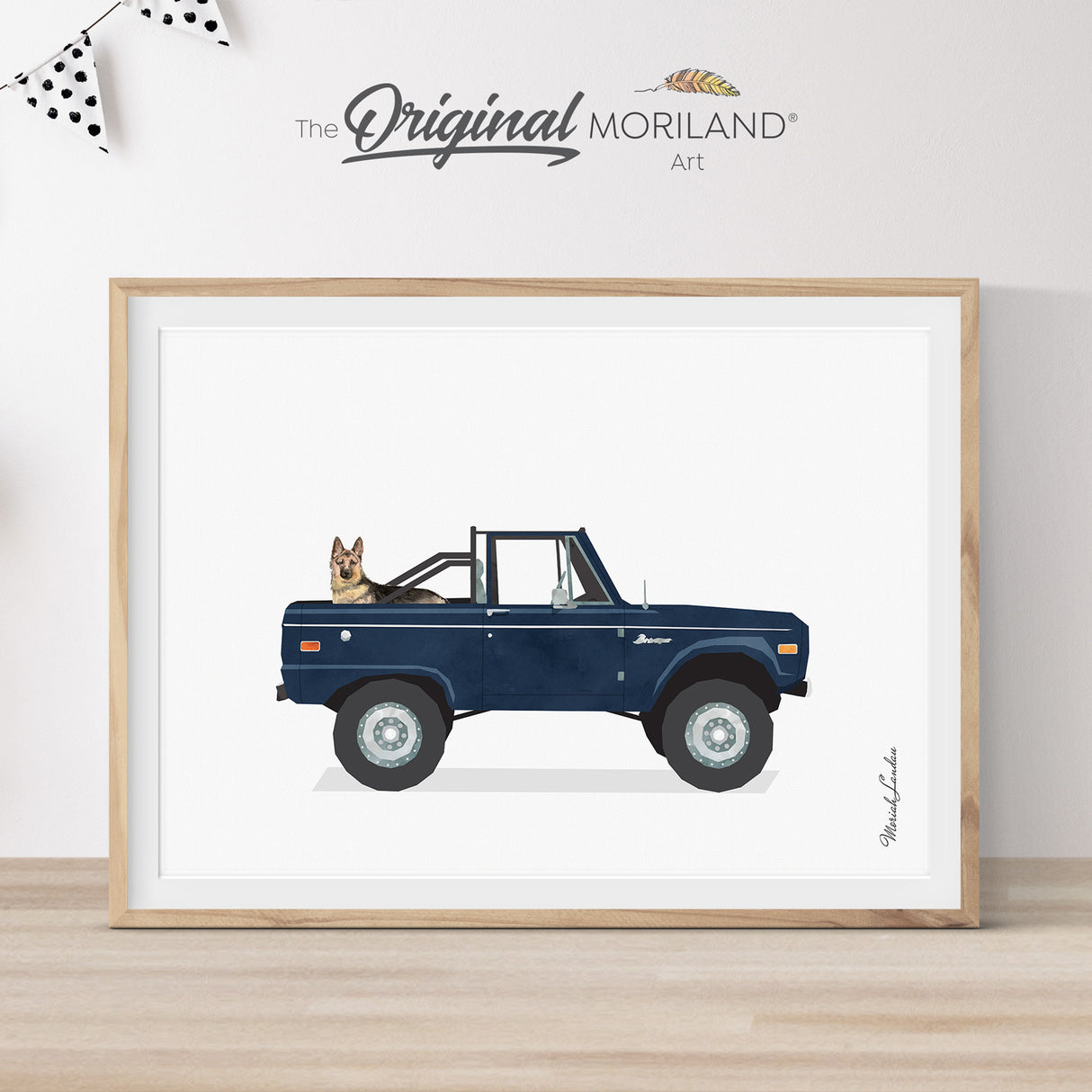 Navy Blue Classic Truck With German Shepherd Dog Print - Printable Art