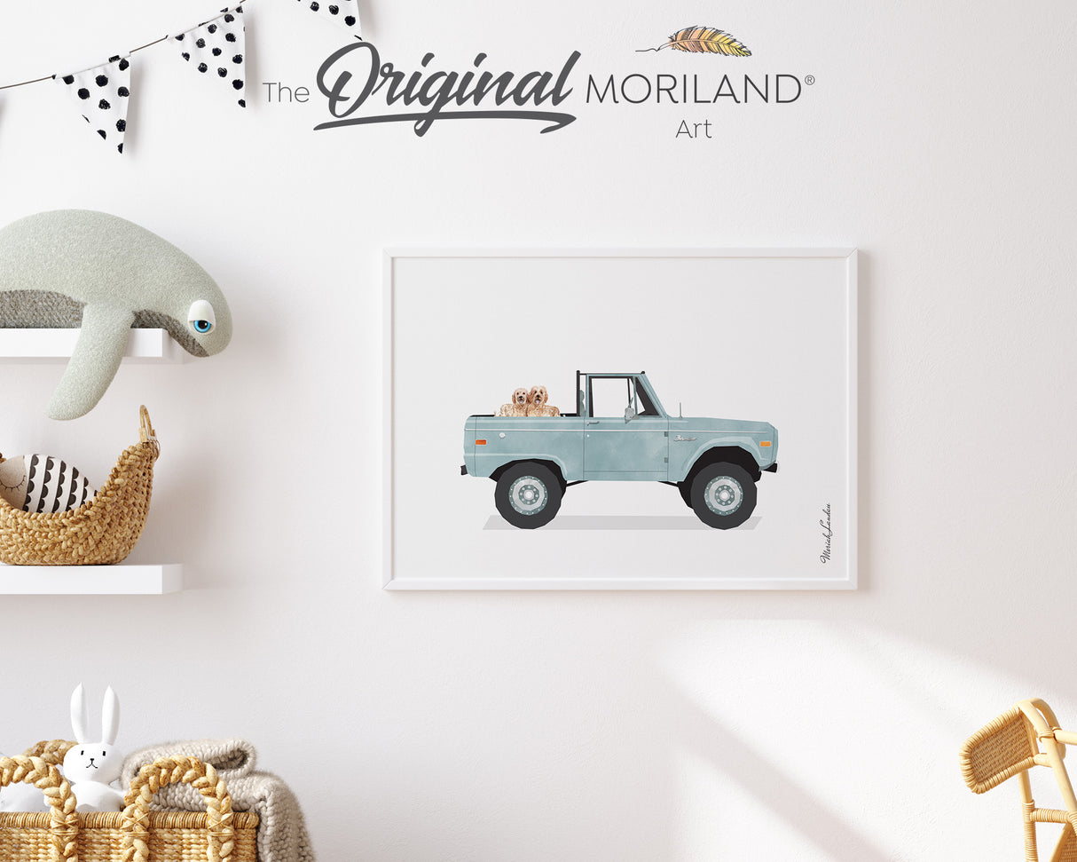 Pale Blue Classic Truck with Goldendoodle Dogs Print - Printable Art - 8x10, 16x20" and 40x50cm is backordered and will ship as soon as it is back in stock.