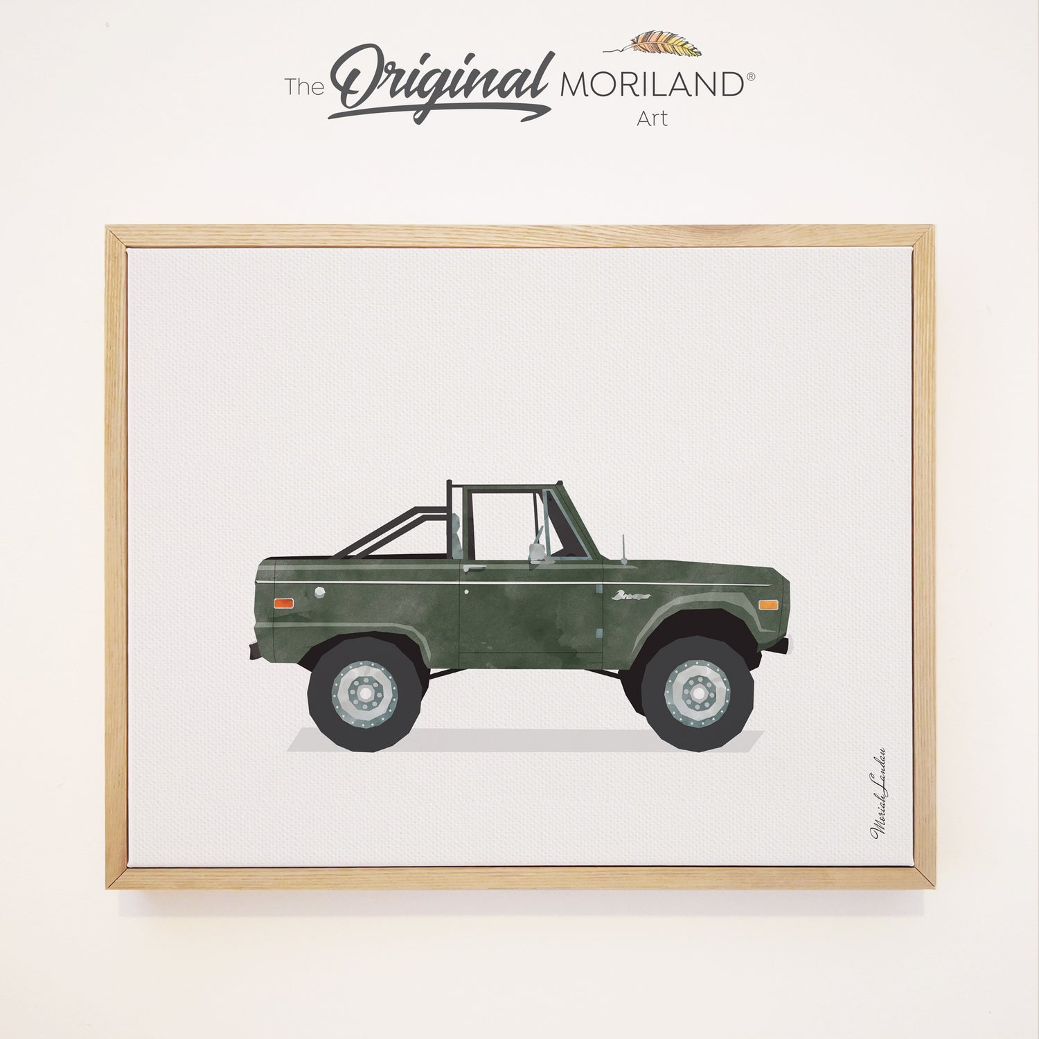 Dark Green Pickup Truck Framed Canvas Wall Art