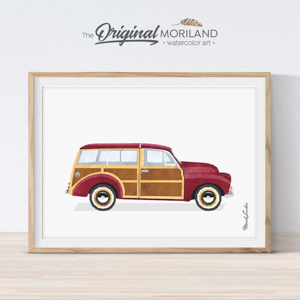 Ruby Vintage Woodie Car Print - Printable Art - 8x10, 16x20" and 40x50cm is backordered and will ship as soon as it is back in stock.