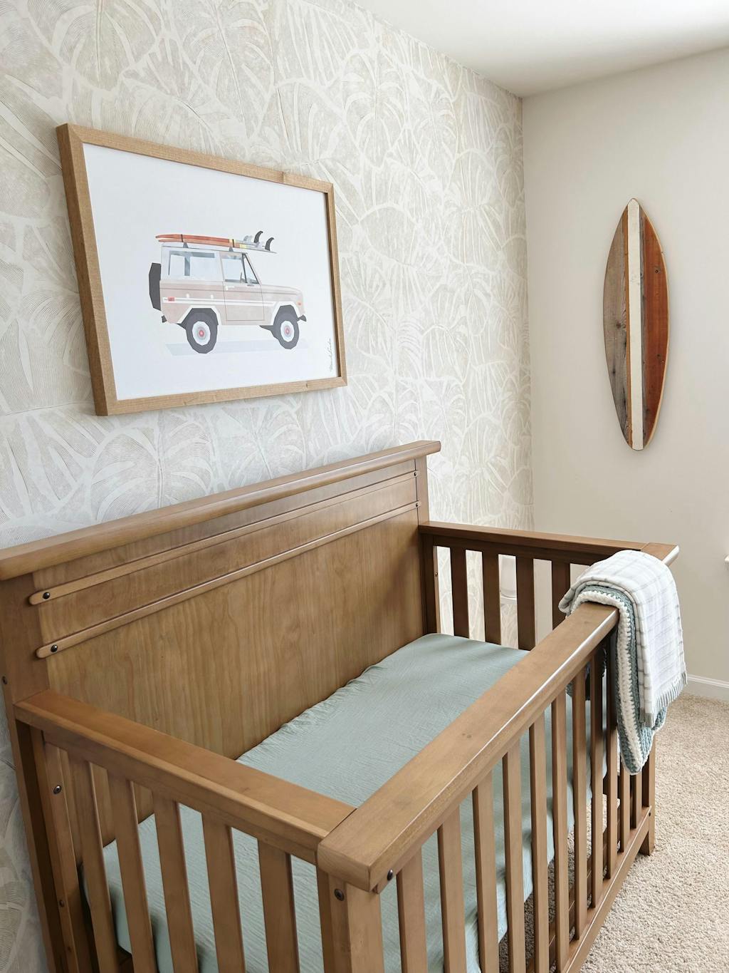 Beige Classic Car with Surfboards Print - Printable Art
