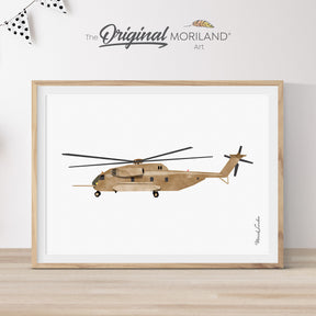 Brown Transport Helicopter Print - Printable Art - 8x10, 16x20" and 40x50cm is backordered and will ship as soon as it is back in stock.