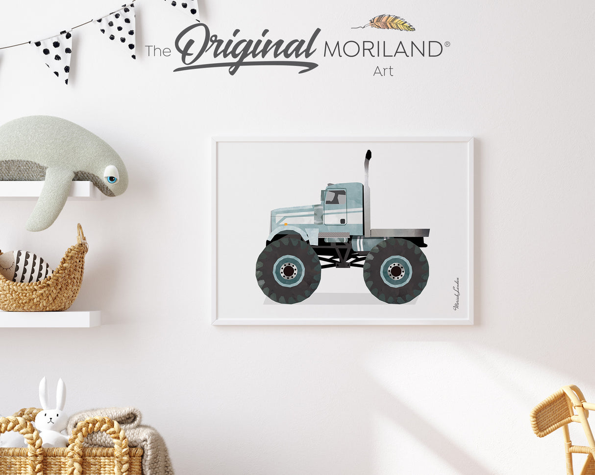 Pale Blue Semi Monster Truck Print - Printable Art - 8x10, 16x20" and 40x50cm is backordered and will ship as soon as it is back in stock.