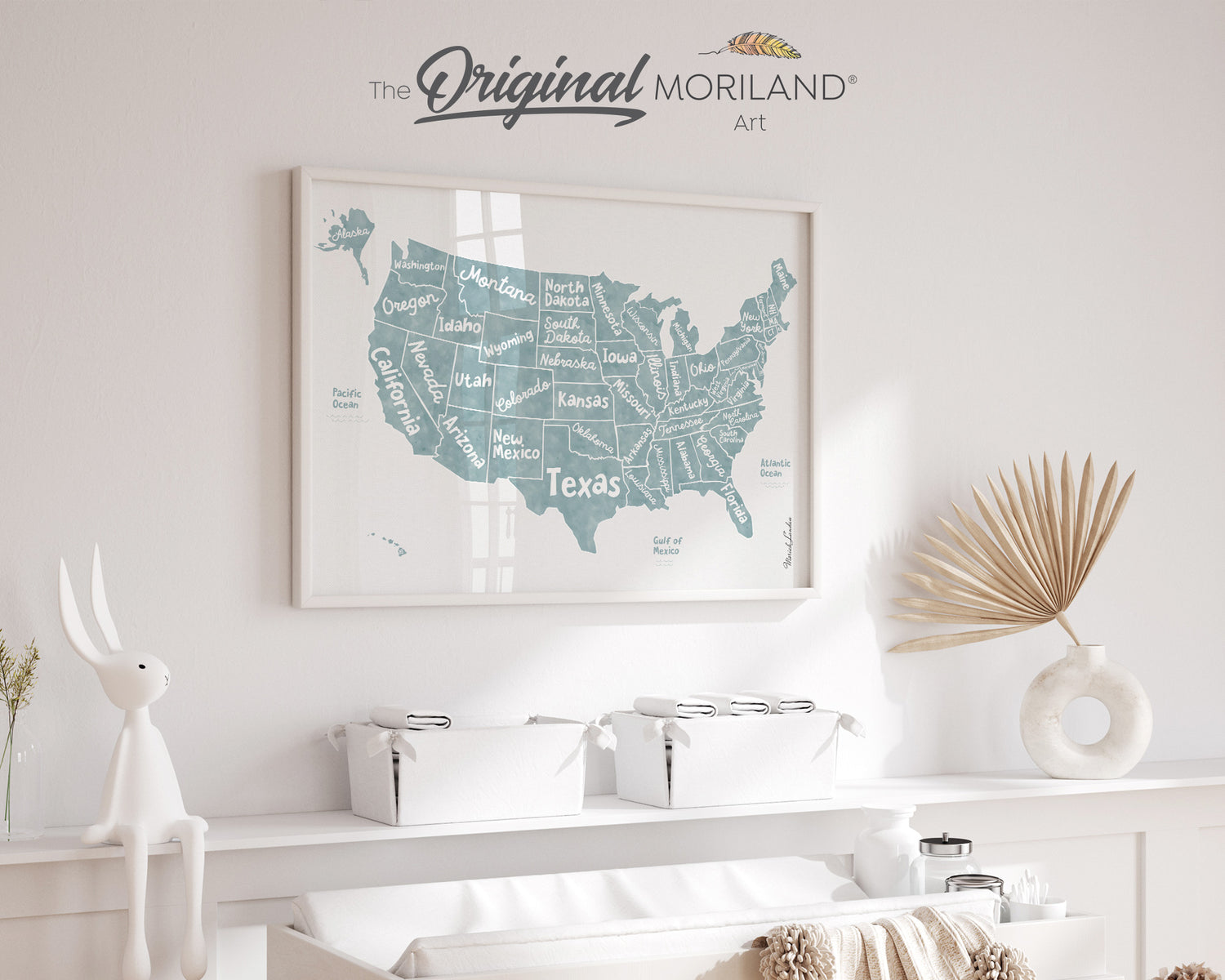 Pale Blue US Map Print | Nursery & Classroom Wall Art | Educational Back to School Poster | MORILAND®