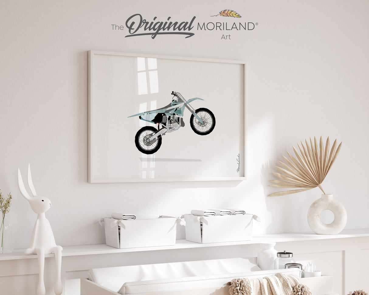 Pale Blue Wheelie Dirt Bike Print - Printable Art